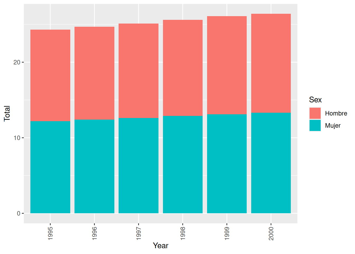 tabla <- tabla |>arrange(Year, desc(Sex)) |>group_by(Year) |>mutate(Total_Acum =cumsum(Total))tabla